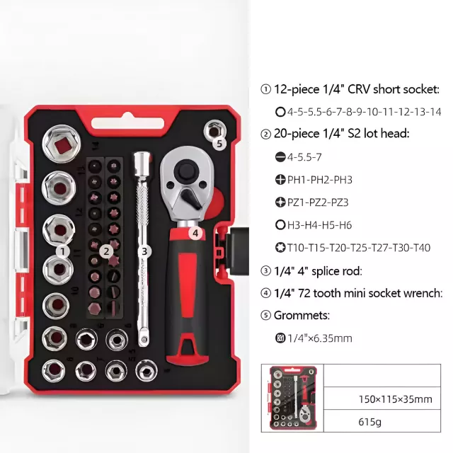 This multi-function set is crafted with high-quality, durable materials, ensuring long-lasting performance. The ratchet screwdriver provides excellent torque and smooth operation, while the wide range of bits and sockets means you’re ready for metalwork, furniture assembly, bike repairs, and more. The compact design keeps all 35 pieces neatly organized, so you’ll always know where your tools are when you need them.