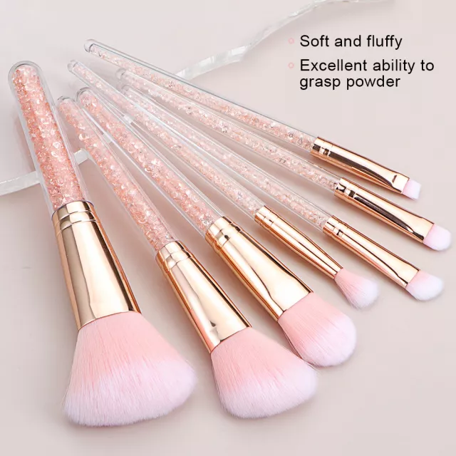 Each brush is made with soft synthetic fibers that feel silky against the skin. The fibers are durable, hypoallergenic, and antibacterial, ensuring long-lasting use while keeping your skin safe and comfortable. Paired with lightweight aluminum tubes and enchanting pink crystal handles, these brushes combine beauty with functionality. The set includes essential tools to apply foundation, powder, blush, eyeshadow, and more, making it versatile enough for daily use or special occasions.