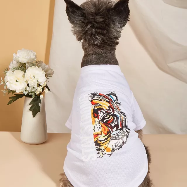 This pet t-shirt is crafted with comfort and fashion in mind. It features a soft, breathable fabric that keeps your pet cozy in all seasons. The trendy tiger print adds a touch of daring style, making it a standout piece in your pet’s wardrobe. Its lightweight design ensures freedom of movement, allowing your dog or cat to play, jump, and explore without any restrictions.