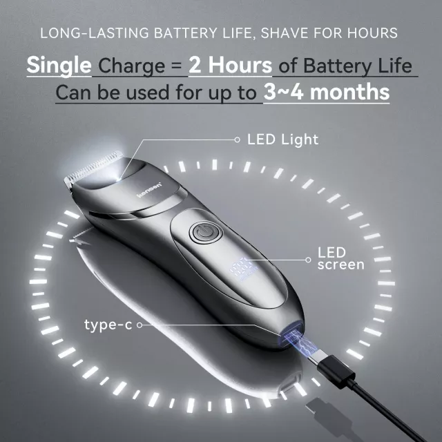 Crafted for convenience, this rechargeable hair trimmer features a modern LED display that keeps you informed of battery levels at a glance. Its lightweight build, just under 4.7 oz, ensures comfortable handling for extended grooming sessions. With a USB Type-C charging system, you can power up anywhere with ease, making it a practical choice for both home and travel.