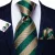 This silk necktie set isn’t just about looks—it’s about making a lasting impression. The jacquard weaving technique ensures durability while maintaining a silky softness that feels as good as it looks. Its green striped design is versatile enough to pair with business suits, evening attire, or wedding ensembles, allowing you to stand out with understated confidence. Perfectly balanced in size, it complements both slim-fit and classic suits, making it a smart addition to your collection.