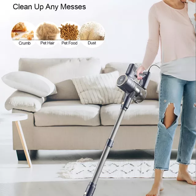 This vacuum transforms effortlessly between a stick vacuum and a handheld unit, weighing only 4 pounds for lightweight maneuverability. It comes with three specialized attachments: a motorized brush head, a long crevice tool, and a 2-in-1 brush, which combine into 6 different cleaning configurations. Perfect for sofas, car interiors, keyboards, and rooms of any size.