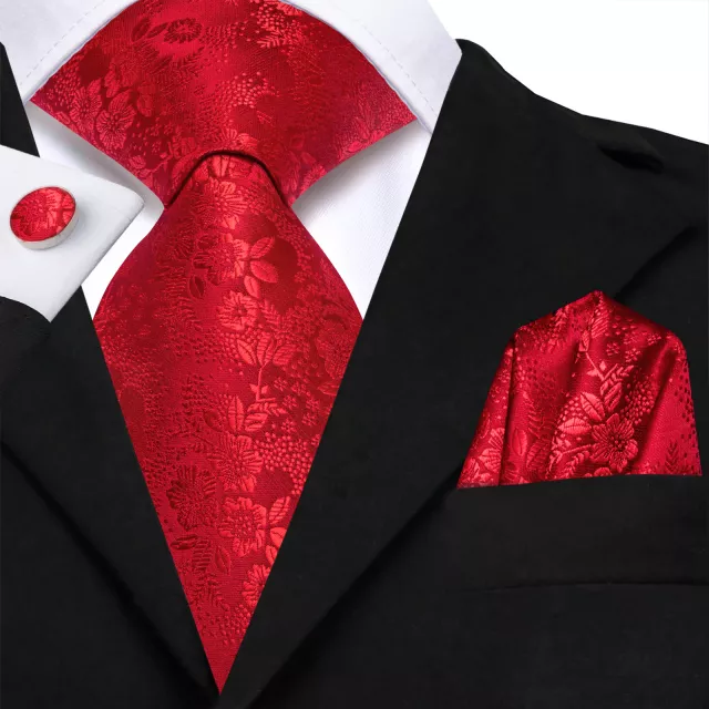 Whether you’re walking down the aisle, presenting at a high-stakes meeting, or attending a formal celebration, this red floral silk tie is your go-to accessory for making a bold yet refined statement. Its timeless design ensures that it will remain a wardrobe essential for years to come.