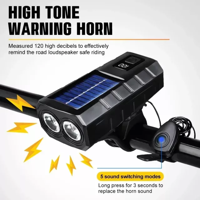 Take your cycling experience to the next level with this multifunctional Solar Bike Horn Light. Designed for both mountain and road biking, this compact front lamp delivers powerful illumination, a high-decibel horn, and eco-friendly charging all in one lightweight device. Whether you’re commuting through city streets or exploring dark trails, this headlight keeps you visible and secure at all times.