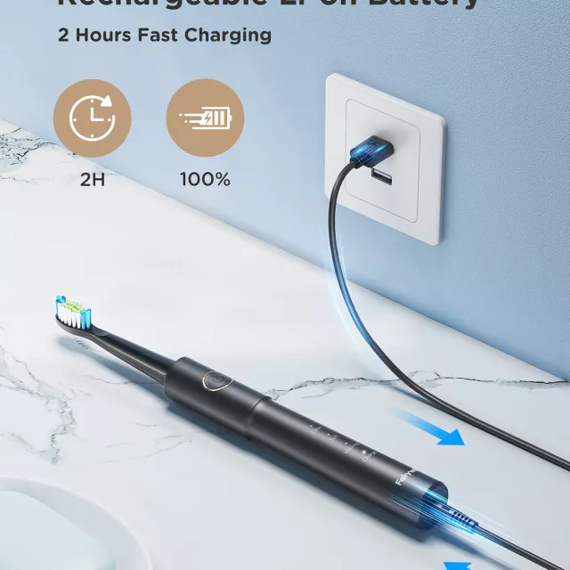This toothbrush makes oral care easy and effective. The built-in 2-minute smart timer ensures you brush for the dentist-recommended time, while a 30-second interval pause reminds you to move between quadrants for a complete clean. With an IPX7 waterproof rating, you can confidently use it in the bath or shower without worries. The rechargeable battery delivers over 20 days of brushing from a quick 2-hour charge, making it perfect for home or travel.
