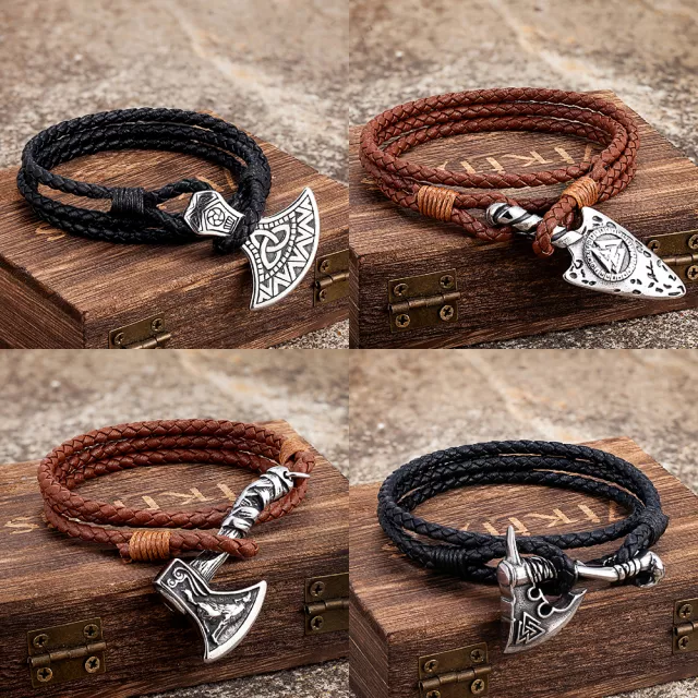 Step into the spirit of the old Norse world with this Vintage Viking Style Leather Wrap Bracelet. Crafted from genuine multi-layer leather, it features a bold stainless steel rune amulet that symbolizes strength, protection, and timeless warrior energy. Every detail is carefully designed to give you an accessory that is both rugged and refined, making it the perfect choice for men who want to stand out with effortless style.